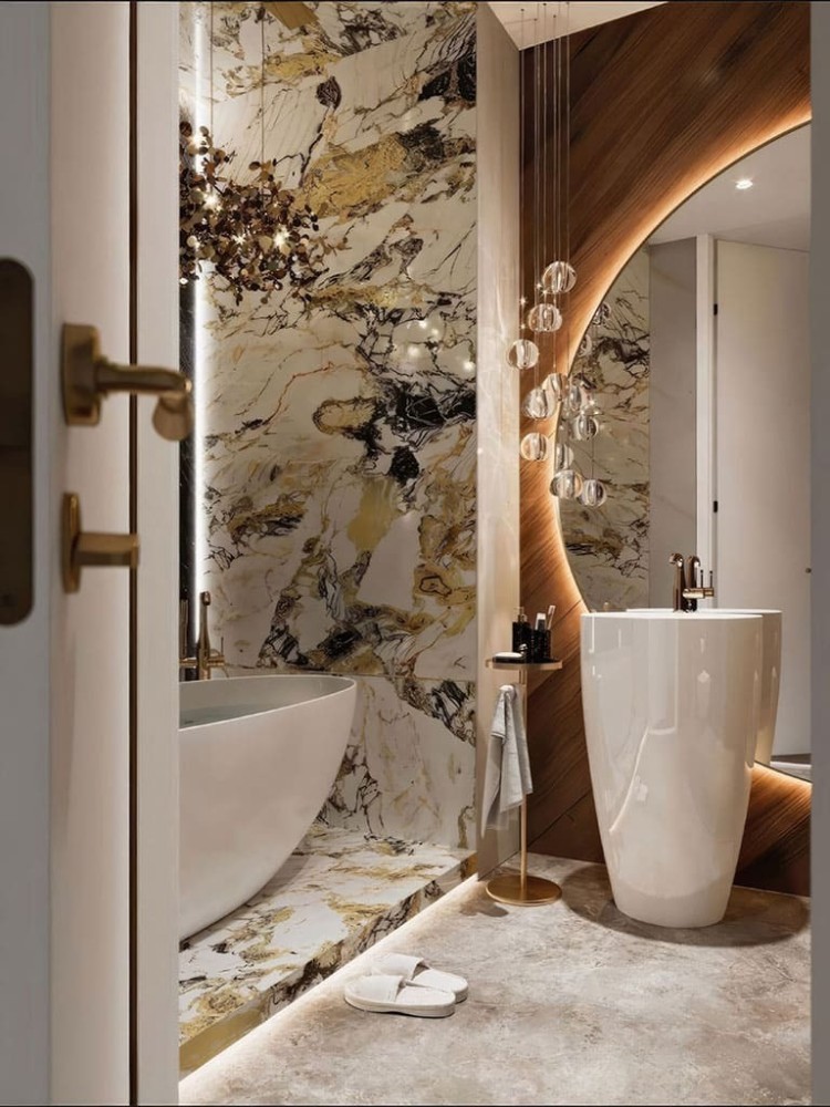 Il bagno glam è pensato per chi desidera uno spazio esclusivo e sofisticato, dove comfort e design si fondono in un’esperienza sensoriale quotidiana.