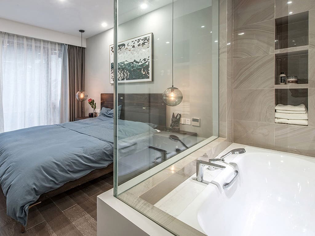 Anche negli ambienti più contenuti è possibile ottenere un effetto elegante e ordinato, sfruttando pareti divisorie in vetro satinato, porte scorrevoli o rivestimenti continui che amplificano la percezione dello spazio. L’atmosfera può essere definita da colori neutri e naturali, superfici opache e dettagli metallici che donano un tocco contemporaneo.